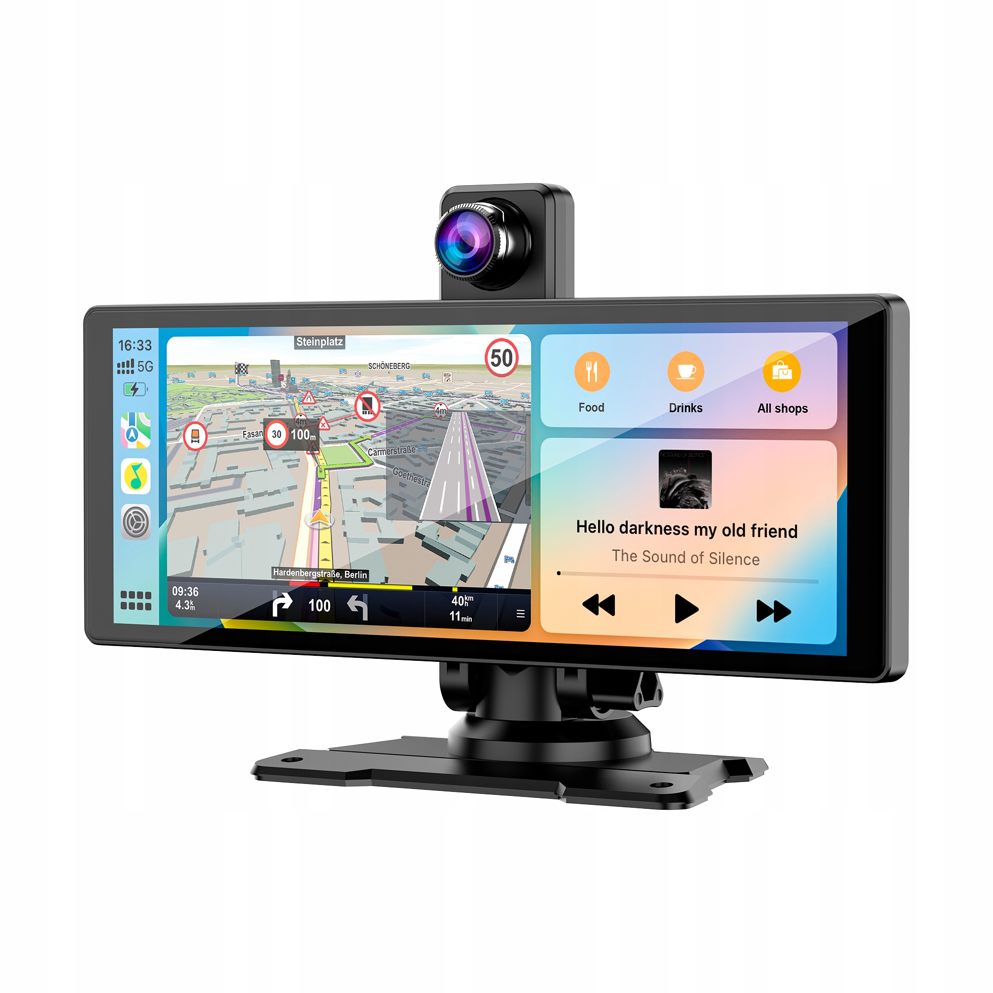 Duży, 9-calowy ekran dotykowy gwarantuje doskonałą czytelność i intuicyjną obsługę. Wysoka rozdzielczość wyświetlacza oraz responsywność sprawiają, że korzystanie z nawigacji, aplikacji multimedialnych czy rejestratora jazdy jest wygodne i przyjemne. Obsługa urządzenia jest płynna, a interfejs przejrzysty i łatwy do dostosowania.