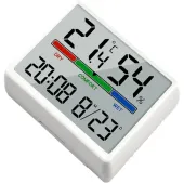 Urządzenie pokazuje aktualną godzinę (format 24h oraz 12h) oraz datę z dniem i miesiącem. Wszystko w przejrzystym układzie – idealne do ustawienia na biurku, komodzie czy kuchennym blacie.