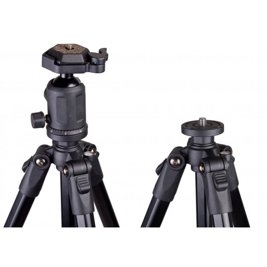 W komplecie znajduje się kulowa głowica, umożliwiająca precyzyjne ustawienie aparatu w żądanej pozycji. Podwójna kolumna pozwala na mocowanie głowicy odwrotnie (do dołu) ułatwiając m.in. fotografowanie małych obiektów. Istnieje możliwość użycia dwóch głowic na raz!
