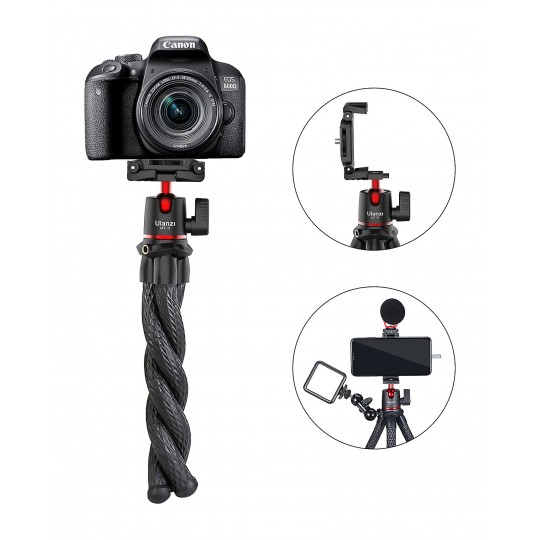 Elastyczny statyw Ulanzi MT-11 wyposażono w małą głowicę kulową, którą wieńczy płytka montażowa kompatybilna z gwintem 1/4". W trosce o bezpieczeństwo Twojego sprzętu wykończono ją antypoślizgową okładziną zapewniającą lepszą przyczepność. Zaokrąglone wycięcie pozwoli ustawić zainstalowane na głowicy urządzenie zarówno w pionie, jak i w poziomie.