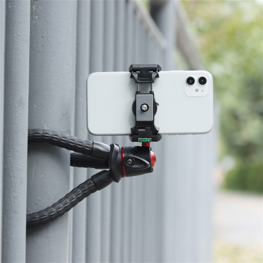 to innowacyjny statyw wyposażony w elastyczne nóżki, które możesz opleść np. wokół gałęzi lub poręczy i stworzyć swoje stanowisko pracy gdziekolwiek przyjdzie Ci nagrywać lub fotografować. Urządzenie wyposażono w męski gwint 1/4" umożliwiający montaż aparatu lub kamery sportowej, a także zintegrowany, rozkładany uchwyt kompatybilny ze smartfonami o szerokości od 60 do 95 mm. Jego maksymalny udźwig to aż 2 kg. Dodatkowy gwint 1/4" oraz gniazdo zimnej stopki pozwolą połączyć statyw z dodatkowymi akcesoriami. Kulowa głowica umożliwi pracę z aparatem lub smartfonem zarówno w pionie, jak i w poziomie. To idealny wybór dla vlogerów, podróżników, a także uczestników wideokonferencji i e-lekcji.