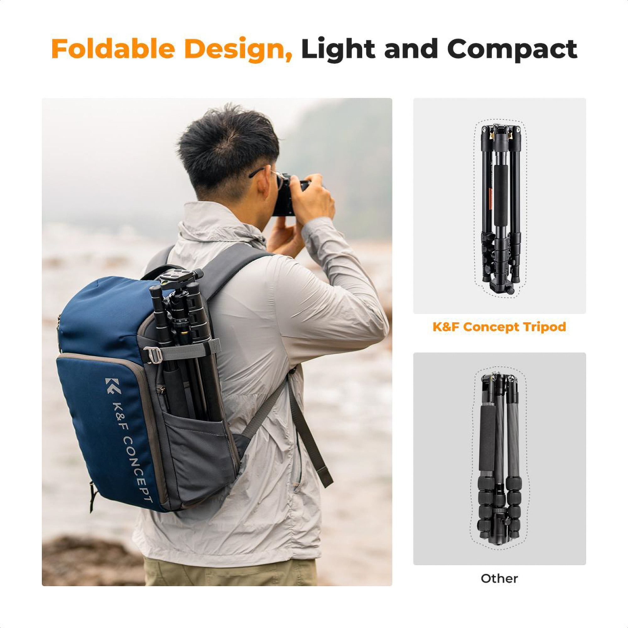 Statyw K&F Concept B234A1 z głowicą kulową BH-28 i uchwytem na telefon to idealny wybór dla fotografów, podróżników i vlogerów. Dzięki zastosowaniu wysokiej jakości stopu magnezu i aluminium odporne na korozję urządzenie waży zaledwie 1,65 kg. Po złożeniu do pozycji transportowej statyw mierzy 43 cm. Dzięki temu możesz bez trudu przytroczyć do plecaka lub spakować do walizki podróżnej.