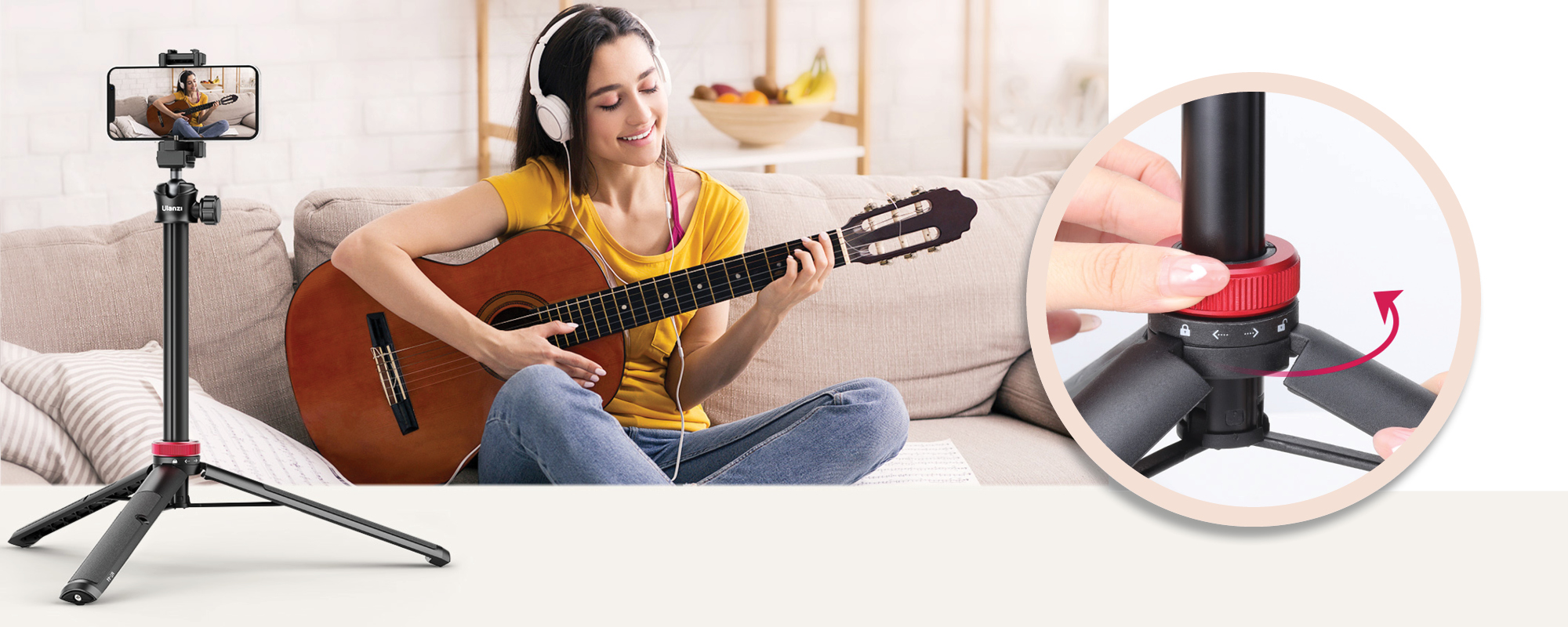 Głowica kulowa pozwala płynnie dostosowywać pozycję urządzenia – w pionie, poziomie, a nawet do ujęć z góry. Niezależnie, czy nagrywasz wideo na TikToka, robisz portret czy streamujesz na Twitchu, zawsze ustawisz idealny kadr w kilka sekund. Głowica zapewnia także stabilność i precyzję ruchu, dzięki czemu unikniesz przypadkowego przekrzywienia urządzenia, z którym pracujesz.