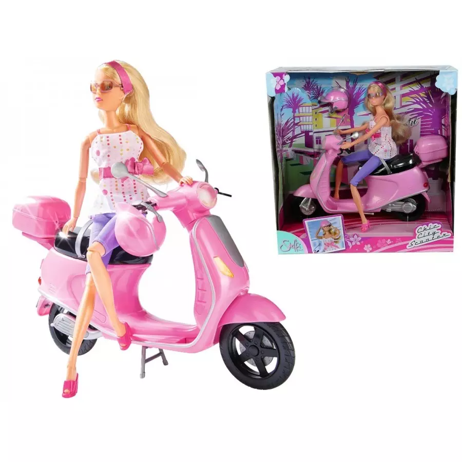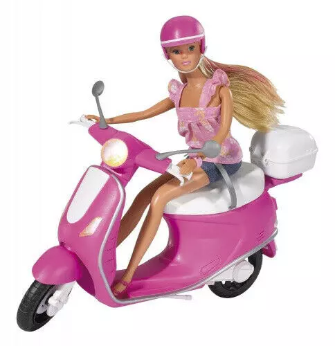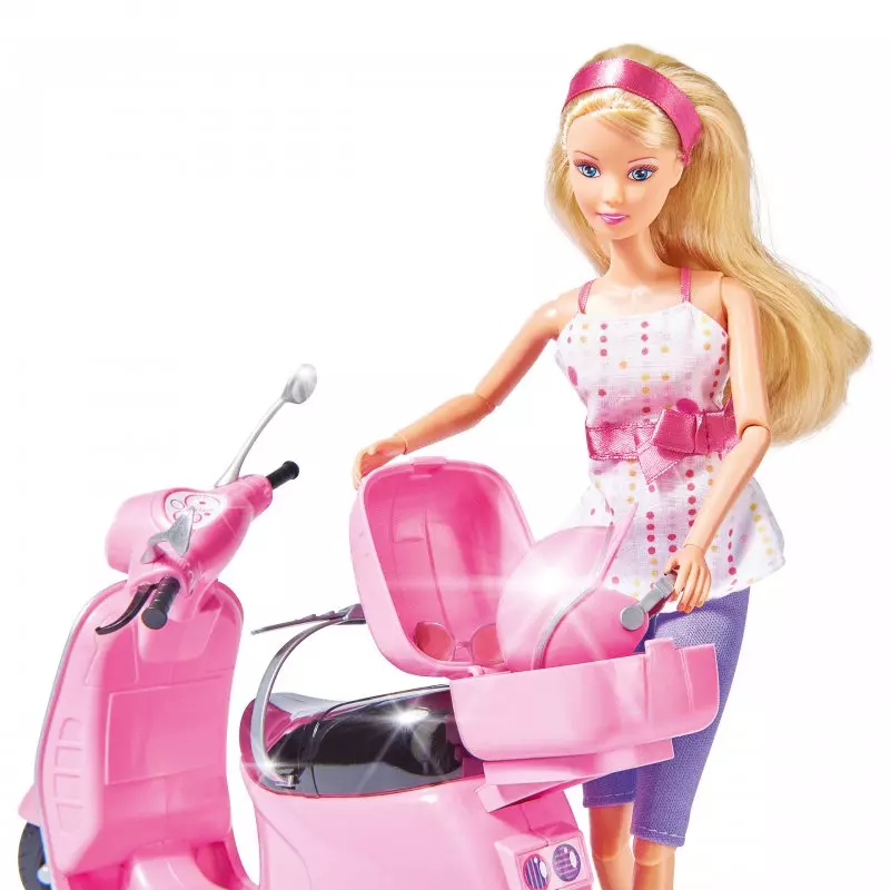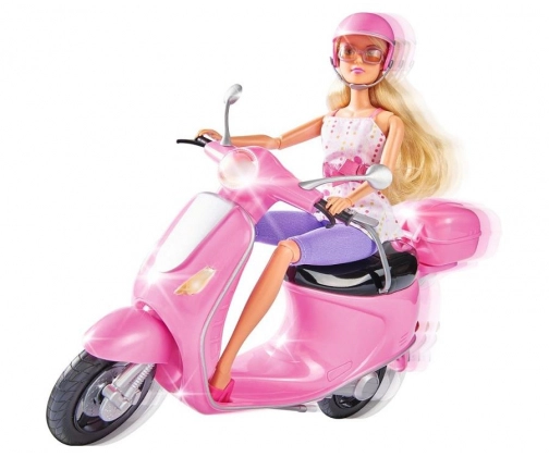 Lalka Steffi na skuterze to zestaw, który urozmaici codzienne scenariusze zabaw lalkami. W opakowaniu znajduje się lalka Steffi ze zginanymi kolanami, łokciami i nadgarstkami, ubrana w letni strój oraz kask ochronny i okulary, a także skuter z obrotowymi kołami, otwieranym schowkiem i podnóżkiem do ustawienia go w stabilnej pozycji. Zawartość opakowania: • lalka Steffi w ubranku, • skuter, • akcesoria (okulary, kask). Wymiary opakowania: 32.0 x 32.0 x 11.0 cm