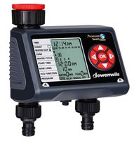 Sterownik Nawadniania z 2 wejściami Dewenwils V2. Przedstawione zdjęcia są poglądowe. Sterownik Nawadniania z 2 wejściami Dewenwils V2. Sterownik nawadniania posiada całkowicie niezależne 2 weścia każde można ustawić za pomocą 4 programów nawadniania. Urządzenie posiada funcje eko, która tworzy przerwy miedzy cyklami nawadniania zapewniając czas absorpcji gleby. W każdym przełączniku zailnstalowane są gumowe pierścienie aby zapobiegać wyciekowi wody. Wejścia ABS są trwałe i nierdzewne. Maksymalne ciśnienie wody wynosi 8, 27 bar. Sterownik jest zasilany dwoma bateriami AA 1,5 V. . Sterownik Nawadniania z 2 wejściami Dewenwils V2. 6720