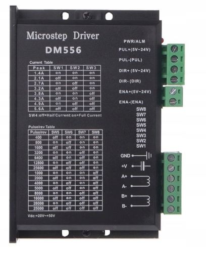 Kompaktowa budowa o wymiarach 120mm x 85mm x 35mm ułatwia montaż w ciasnych przestrzeniach. Sterownik DM556 to gwarancja precyzyjnego i bezawaryjnego działania, dostosowanego do profesjonalnych potrzeb – od automatyki po robotykę, otwierając drzwi do innowacyjnych rozwiązań.