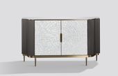 Komoda Nowojorska Champion to wyjątkowy mebel, który łączy elegancję z nowoczesnym designem. Charakteryzuje się niezwykłym wzornictwem, które z pewnością przyciągnie wzrok i stanie się centralnym punktem każdego wnętrza. Jej oryginalna kolorystyka, łącząca grafit z subtelnymi złotymi akcentami, idealnie wkomponuje się w różnorodne aranżacje. Front komody wykonany z naturalnej muszli morskiej układającej się w symetryczny, artystyczny wzór, nadaje jej luksusowego charakteru.