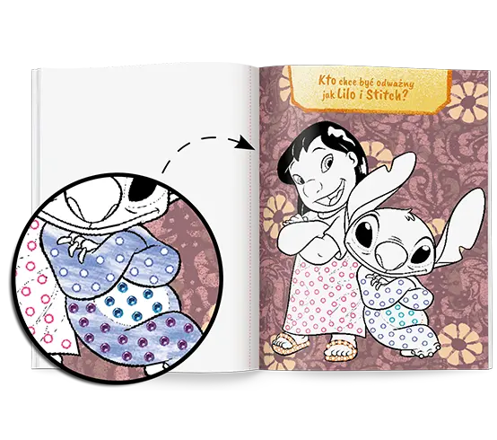Fantastyczna nowość dla wszystkich fanów Stitcha! Spraw, żeby niebieski kosmita błyszczał jak prawdziwa gwiazda – wszystko za sprawą aż 1200 diamencików, którymi możesz ozdobić uroczego stworka. Pokoloruj obrazki, a potem naklej barwne diamenciki w zaznaczonych lub wybranych przez siebie miejscach. Zabawa w kolorowanie i naklejanie pomaga ćwiczyć motorykę i uczy kolorów. Dzięki perforowanym stronom gotowe dzieła możesz wyjąć z książki i udekorować nimi swój pokój. Ta pozycja to świetny prezent dla małych artystów!