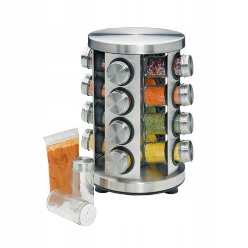 Posiada miejsce na 16 słoików na przyprawy.