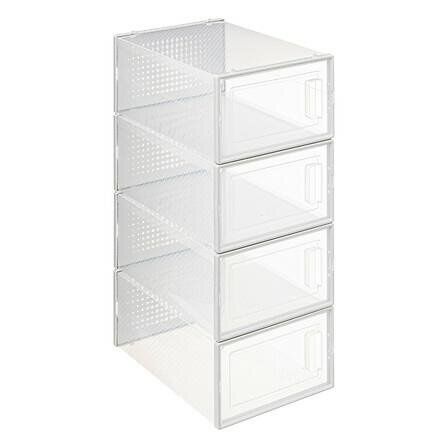 Prezentowany zestaw 4 przezroczystych pudełek na buty Stak to doskonałe rozwiązanie dla osób, które cenią sobie porządek i przejrzystość. Dzięki temu produktowi, każda para obuwia znajdzie swoje miejsce, a Ty z łatwością odnajdziesz swoje ulubione buty. Pudełka mają rozmiar M, co oznacza, że pomieszczą buty do rozmiaru 44. Wykonane z plastiku PP/PS, są lekkie (ich waga to zaledwie 1,050 kg), ale jednocześnie wytrzymałe.