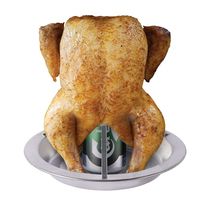 Dzięki pionowemu ułożeniu na grillu kurczak odbywa się równomierne smażenie, mięso staje się soczyste, pokryte złotą skórką. W tym stojaku można zainstalować puszkę z piwem lub innym płynem, podczas przyrządzania potrawy płyn odparuje i nada mięsu soczystości oraz aromatu marynaty wlanej do puszki.