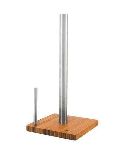 Stojak wykonany z wysokiej jakości satynowanej sali nierdzewnej. Podstawa wykonana z drewna bambusowego