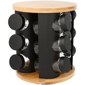 Obrotowy stojak ze stali nierdzewnej lakierowanej na kolor czarny na 12 pojemników z przyprawami.