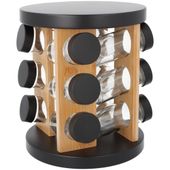 Obrotowy stojak ze stali nierdzewnej i drewna bambusowego na 12 pojemników z przyprawami.