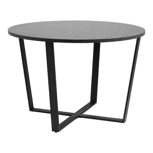 Stół Amble został zrobiony z płyty MDF ozdobionej okleiną imitującą marmur oraz z czarnejj pomalowanej proszkowo metalowej podstawy. Stół wpisuje się w styl glamour. Okrągły blat stołu idealnie wpisuje się w geometryczną podstawę. Nogi stołu przypominają zwężające się płozy, które krzyżują się pośrodku. Waga: 25 kg.