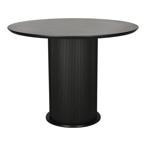Stół został wykonany z wytrzymałego połączenia melaminy i płyty MDF, co gwarantuje jego trwałość i odporność na uszkodzenia. Blat stołu pokryty jest melaminą, która nie tylko jest trudnopalna, ale również wyjątkowo odporna na działanie wody, wysokich temperatur oraz promieniowanie świetlne. Podstawa stołu, ozdobiona lamelami, wykonana została z frezowanej płyty MDF, co dodaje mu niepowtarzalnego charakteru. Stylowy design stołu, w połączeniu z klasycznym wykończeniem w kolorze czarnym, sprawia, że mebel ten doskonale wpisuje się w różnorodne aranżacje wnętrz. Idealnie sprawdzi się zarówno w salonie, jako miejsce spotkań z rodziną i przyjaciółmi, jak i w przestrzeni jadalnianej, tworząc elegancką atmosferę.