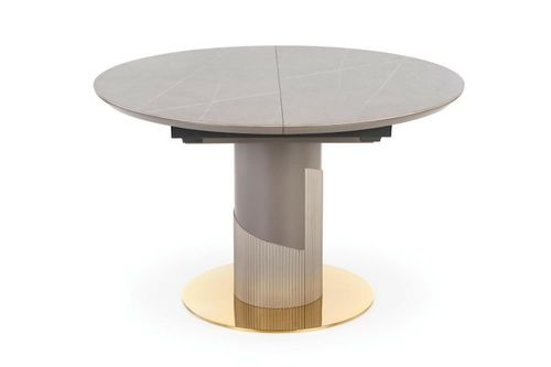 Blat stołu wykonany jest z ceramiki i MDF lakierowanego, co zapewnia trwałość i łatwość w utrzymaniu czystości. Dzięki temu, że blat jest rozkładany, można go łatwo dopasować do potrzeb i liczby gości. Styl glamour i nowoczesny dodaje elegancji i stylu do wnętrza, a kolor popielaty marmur i jasny popiel noga w połączeniu ze złotymi elementami sprawiają, że stół Moette staje się prawdziwą ozdobą pomieszczenia.