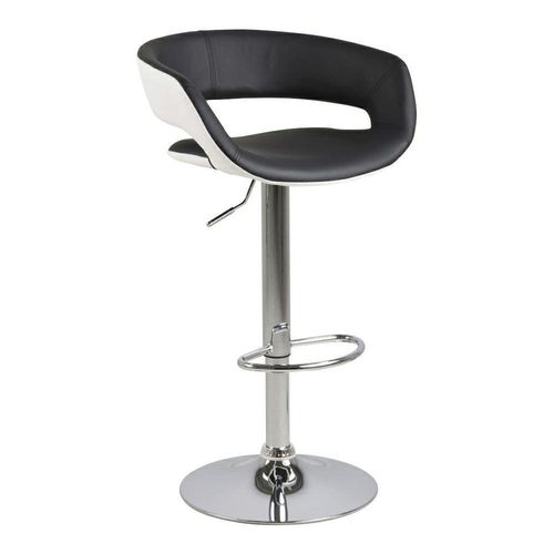 Nowoczesny stołek barowy Grace to doskonałe siedzisko do wyspy kuchennej lub baru. Siedzisko oraz oparcie stołka zostało obite miękką eko skórą w kolorze białym na zewnątrz oraz czarnym wewnątrz. Ergonomiczny kształt siedziska sprawia że stołek jest bardzo komfortowy. Stołek posiada funkcję obracania się oraz regulacji wysokości. Podstawą stołka jest metalowa chrromowana noga. Na nodze został umieszczony dodatkowo podnóżek. Waga: 7,4 kg.