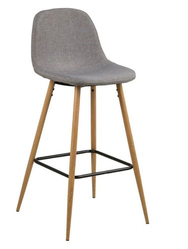 Stołek barowy Wilma to połączenie nowoczesnego designu i wygody użytkowania. Wykonany z wysokiej jakości materiałów, charakteryzuje się wytrzymałością i trwałością. Tkanina Sawana light grey 21, którą został pokryty, nadaje mu eleganckiego, nowoczesnego wyglądu. Metalowe nogi w kolorze dębu dodają stołkowi stabilności, a czarny wspornik pełniący funkcję podnóżka, stanowi interesujący kontrast dla całości.
