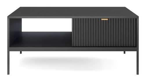 Stwórz unikalną przestrzeń w swoim domu z nowoczesnym stolikiem kawowym Delicious. Ten wyjątkowy mebel nie tylko doskonale dopełni wystrój Twojego salonu, ale również stanie się jego sercem, przyciągając wzrok i skupiając uwagę wszystkich gości. Dzięki eleganckiemu ryflowanemu frontowi szuflady w czarnym kolorze oraz luksusowemu złotemu uchwytowi, stolik Delicious łączy w sobie styl, funkcjonalność i trwałość.