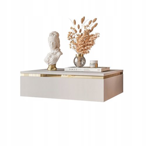 Ten stolik nocny z kolekcji AURORA wyróżnia się minimalistycznym designem, który łączy elegancję z codzienną praktycznością. Delikatny złoty pasek na froncie dodaje subtelnego luksusu, a wybarwienie w kolorze kaszmiru idealnie harmonizuje z nowoczesnymi i klasycznymi aranżacjami, tworząc przestrzeń pełną klasy i spokoju.