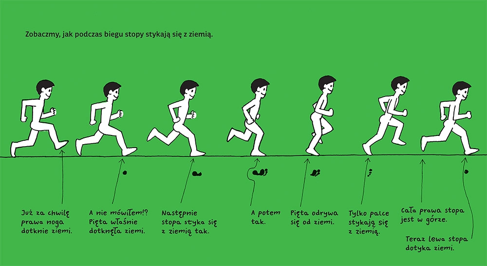 Szósta część serii „Moje Ciało”. Po co nam stopy? Co potrafimy nimi robić? Czym różnią się stopy od dłoni? Do czego potrzebne są linie papilarne? I dlaczego stopa goryla jest tak bardzo podobna do jego dłoni? W szóstej części edukacyjnej serii o ciele dowiemy się wiele o stopach. Będzie też miejsce do uwiecznienia własnych stóp na kartach książki.