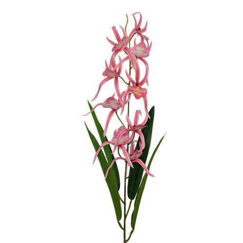 Dekoracyjna gałązka storczyka wykonana z wysokiej jakości materiału gumowanego. Kwiaty są realistycznie odwzorowane, z dbałością o detale – posiadają naturalny kształt płatków oraz solidnie wykończone środki. Na jednej gałązce znajduje się 9 efektownych kwiatów oraz kilka długich, smukłych liści.