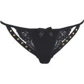 Urzekające, czarne stringi wykończone ćwiekami w kolorze złotym, po bokach wkomponowana czarna koronka, czyli znakomity dodatek do biustonosza V-9781. Skorzystaj z okazji i wybierz komplet, który podkreśli Twoją kobiecość.