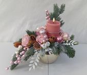 Ten wyjątkowy stroik bożonarodzeniowy zachwyca subtelną, romantyczną kolorystyką różu, eleganckim blaskiem ozdób oraz harmonijnym układem kwiatów i gałązek. Ułożony został w efektownej ceramicznej, lustrzanej doniczce, która pięknie odbija światło i podkreśla delikatny charakter kompozycji. Stroik ma 43 cm długości, 41 cm szerokości i 34 cm wysokości, dzięki czemu doskonale prezentuje się na stole, komodzie czy jako dekoracja świąteczna w salonie.