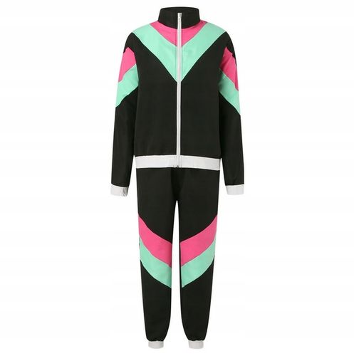 Ten wysokiej jakości strój dres to kwintesencja ówczesnej mody disco. Wykonany z lekkiego i śliskiego materiału, zapewnia nie tylko wygodę, ale także niepowtarzalny look. Czarny kolor w połączeniu z różowymi i zielonymi akcentami tworzy stylizację wartą zapamiętania.