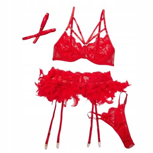 ✅ Zawartość kompletu: Pas do pończoch, Stringi, Z biustonoszem, Inna