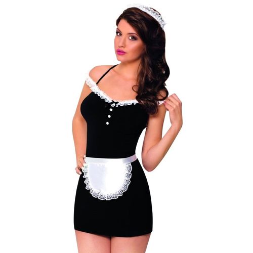 Strój Pokojówki. Sukienka z guziczkami, ozdobiona koronką.