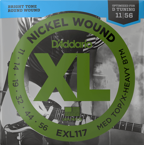 Struny D'Addario EXL117 posiadają niklowaną owijkę, która chroni je przed korozją tym samym przedłużając ich żywotność, nawiniętą na stalowy rdzeń o przekroju sześciokąta (heksagonalnym). Zestaw ten zapewnia długotrwałe, charakterystyczne jasne brzmienie, przeznaczone do każdego rodzaju muzyki.
