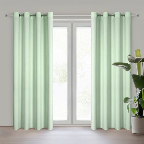 Zasłona gotowa jednokolorowa matowa szerokość: 140 cm, długość: 250 cm, kolor: szałwiowy, Skład: 100% poliester