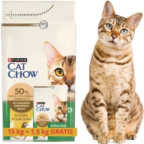 Purina Cat Chow Sterilised to pełnoporcjowa sucha karma opracowana specjalnie dla dorosłych kotów po zabiegu sterylizacji lub kastracji.