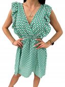 Ta nowa, letnia sukienka wyróżnia się kopertowym dekoltem oraz głębokim wycięciem z tyłu, które dodaje jej zmysłowości. Drobne falbanki na ramionach wprowadzają dziewczęcy akcent, a elastyczna gumka w pasie pozwala doskonale dopasować sukienkę do sylwetki, podkreślając Twoje atuty. Dzięki tym szczegółom, każda kobieta poczuje się w niej nie tylko komfortowo, ale i niezwykle atrakcyjnie.