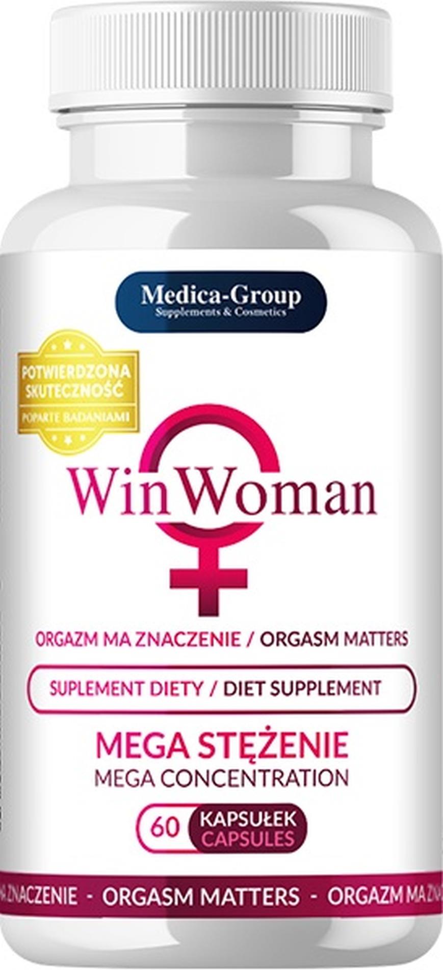 WinWoman to suplement diety stworzony specjalnie dla kobiet, które chcą poprawić doznania seksualne, czerpać radość z rozkoszy, którą daje im partner i cieszyć się życiem. W tym celu opracowano formułę opartą na mocno skoncentrowanych ekstraktach (koncentracja nawet 20:1), które mają wspierać sprawność seksualną. Działanie składników opiera się na optymalnym zwiększeniu napływu krwi do naczyń krwionośnych w strukturze stref intymnych.