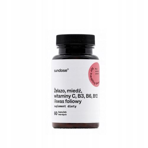 Suplement diety sundose° For Healthy Blood° stanowi kompleksową formułę, która skutecznie uzupełnia niedobory żelaza oraz wspomaga jego wchłanianie i transport w organizmie. Dzięki temu produkt ten jest niezastąpionym wsparciem w walce z niedokrwistością oraz jej objawami, takimi jak chroniczne zmęczenie, senność, wypadanie włosów i bóle głowy.