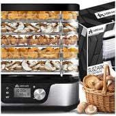 Ta wysokiej jakości suszarka do grzybów, warzyw i owoców o mocy 600W wyróżnia się precyzyjną konstrukcją i zaawansowanymi funkcjami, które dbają o każdy szczegół. Z regulacją temperatury od 35 do 70°C oraz programatorem czasowym 1-24H, umożliwia idealne suszenie różnych produktów, zachowując ich pełną wartość odżywczą i świeżość na długo.