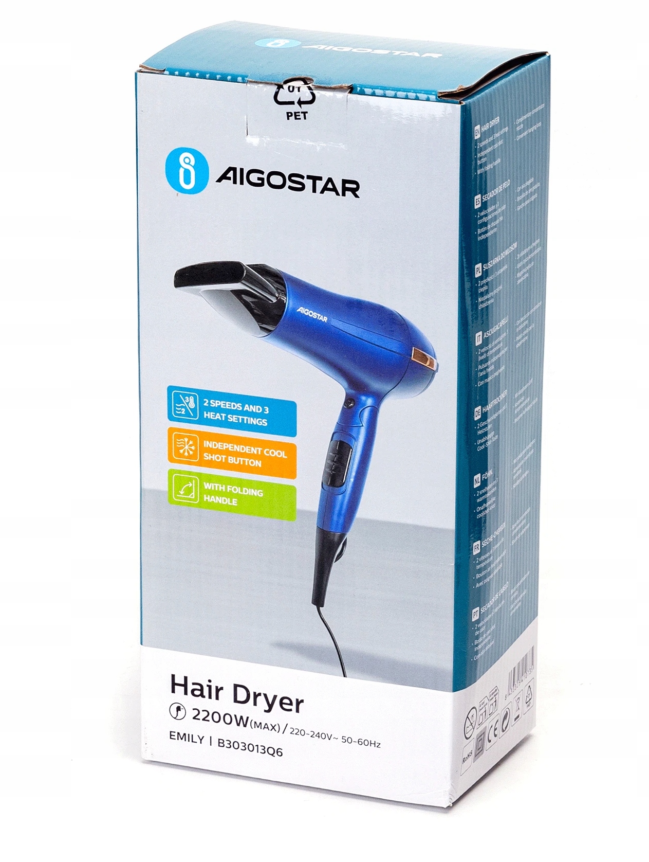 Suszarka do włosów Aigostar 2200W to doskonałe rozwiązanie dla osób ceniących mobilność i wygodę. Składana rączka ułatwia przechowywanie oraz czyni ją idealną na wyjazdy i do niewielkich przestrzeni. Dzięki kompaktowej konstrukcji mieści się w każdej walizce i kosmetyczce.