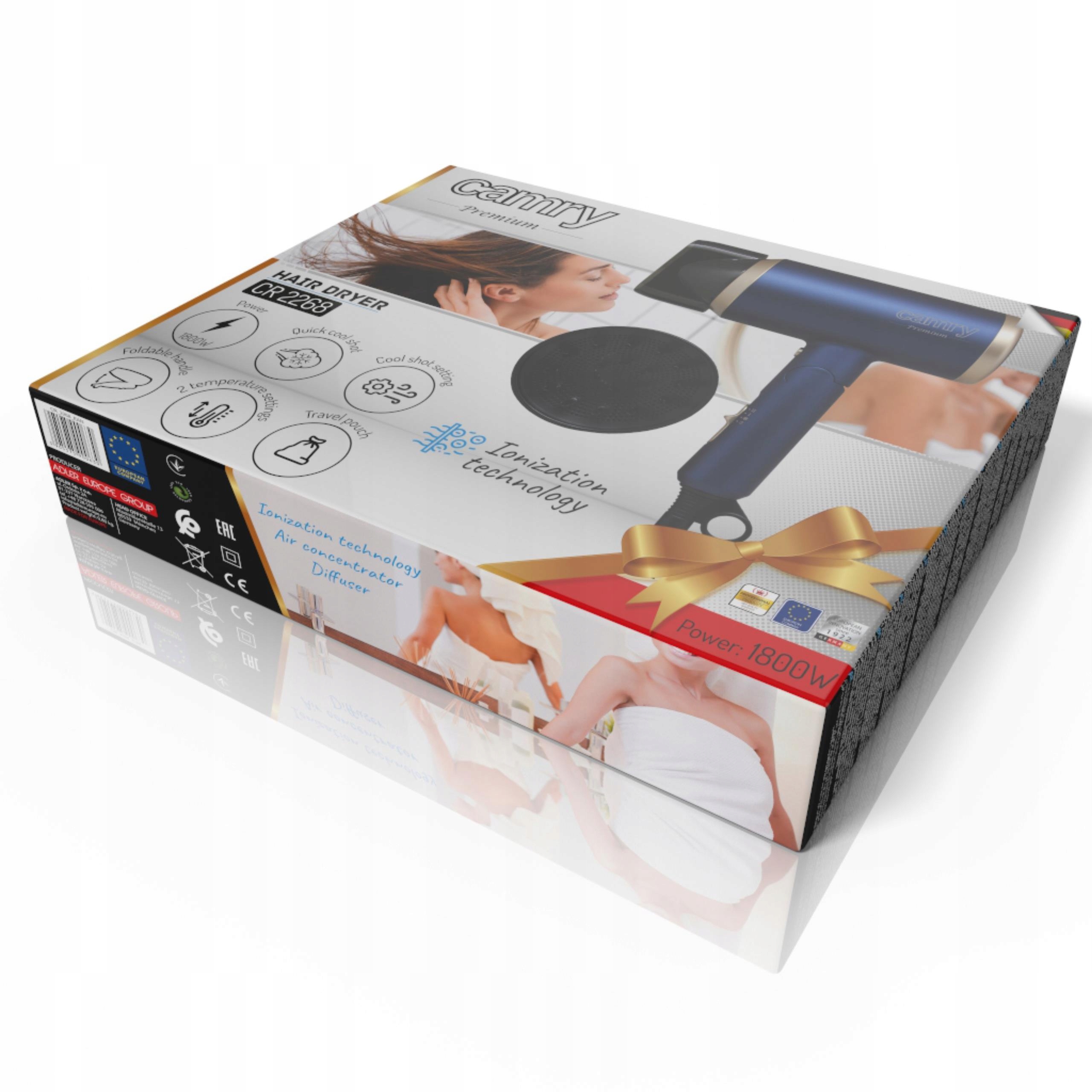 Suszarka do włosów Camry 2268 to nie tylko urządzenie, które wysuszy Twoje włosy, ale także narzędzie, które pomoże Ci stworzyć idealną fryzurę w zaciszu własnego domu. Jest idealnym towarzyszem codziennego rytuału pielęgnacji włosów. Camry 2268 oferuje 2 poziomy nadmuchu i 2 ustawienia temperatury, dzięki czemu możesz dostosować suszenie do swoich włosów. Za pomocą przycisku „Quick Cool Shot” można szybko schłodzić włosy, co pomaga utrwalić fryzurę i przedłużyć jej trwałość. Wbudowany system jonizacji sprawi, że Twoje włosy będą mniej podatne na elektryzowanie się, pozostawiając je gładkie i lśniące. Suszarka Camry 2268 wyposażona jest w praktyczny uchwyt do zawieszenia, który ułatwia przechowywanie i oszczędza miejsce, a dzięki składanemu uchwytowi suszarka jest kompaktowa i łatwa do przechowywania lub zabrania w podróż. Suszarka do włosów Camry 2268 to niezawodne narzędzie, które pomoże Ci osiągnąć wymarzony wygląd bez konieczności wizyty w salonie fryzjerskim. Teraz stylizacja włosów może być szybka i łatwa.