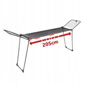 Specjalnie zaprojektowane grube linki na skrzydłach oraz głównym stelażu skutecznie zapobiegają powstawaniu odgnieceń na praniu. Elegancki czarny kolor doskonale komponuje się z każdym wnętrzem, a stabilna konstrukcja z równoległymi nogami gwarantuje pewność nawet przy pełnym obciążeniu.