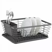 Ociekacz do naczyń z tacą, czarny, wykonany z wysokiej jakości metalu to niezwykle funkcjonalne akcesorium, które stanie się niezbędnym elementem wyposażenia każdej kuchni. Wygodne suszenie naczyń na odpowiednio zaprojektowanej suszarce zapobiega nieuważnemu strąceniu kubka lub talerza, które w efekcie kończy się jego uszkodzeniem lub nawet stłuczeniem. Nawet gdy posiadamy zmywarkę, suszarka przydaje się do odkładania pojedynczych naczyń umytych ręcznie.