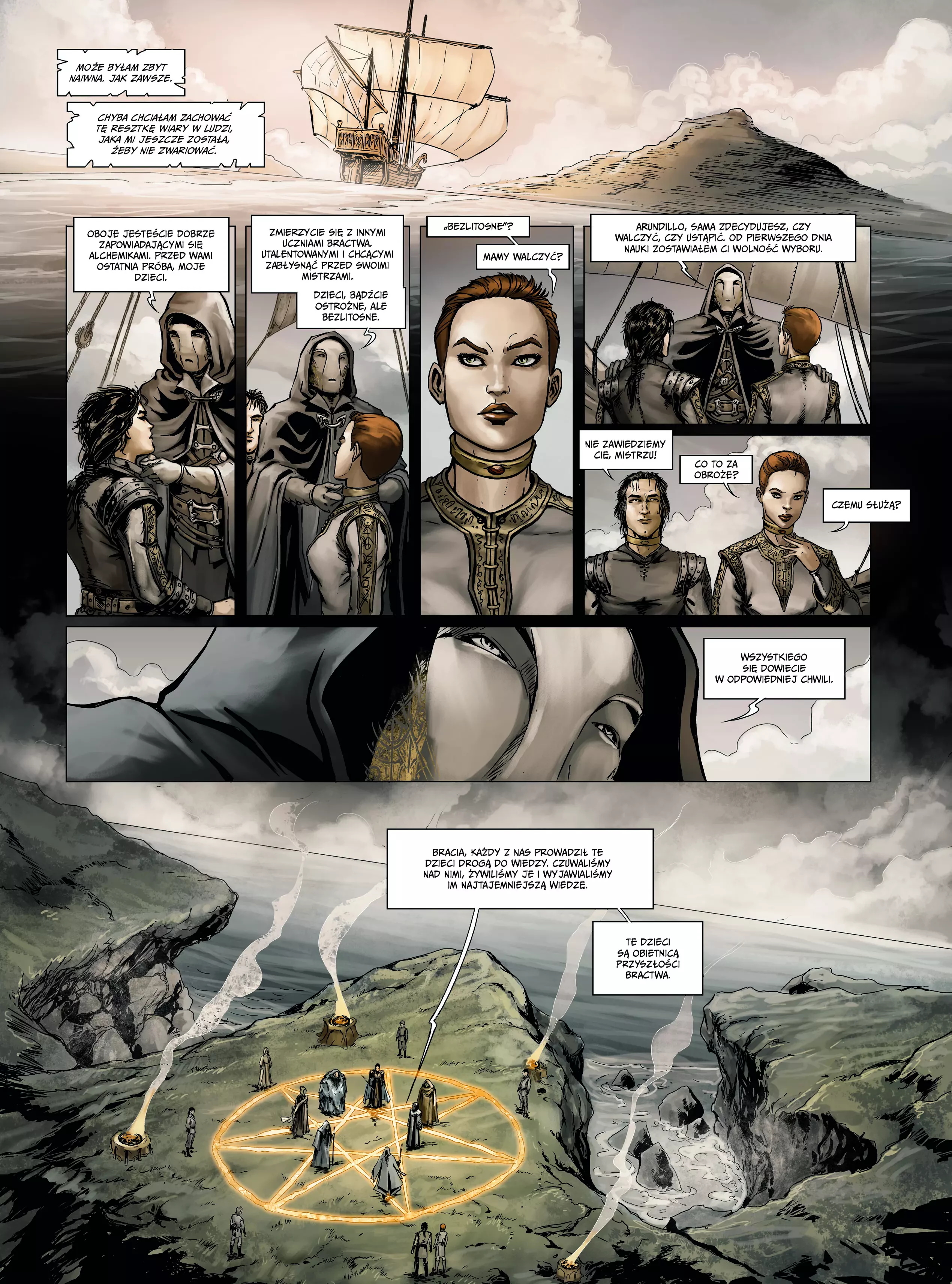 „Magowie” to seria rozgrywająca się w Akwilonie – jednym z największych komiksowych uniwersów fantasy. Cykl jest poświęcony czarodziejom z rasy ludzkiej, którzy podążają różnymi ścieżkami mocy. Alchemiczka Arundilla należy do Zakonu Cieni, organizacji kontrolującej magów, aby nie sprowadzili na świat katastrofy. Podczas misji zlecanych przez zakon czarodziejka rzadko trzyma się rozkazów i zamiast aresztować, zabija podejrzanych o działalność wywrotową. Zdaje się, że niesubordynacja alchemiczki ma związek z jej przeszłością, kiedy jako dziewczynka była szkolona przez tajemniczego mistrza zwanego Smutnym Uśmiechem... Świat Akwilonu wymyślili dwaj francuscy scenarzyści specjalizujący się w opowieściach mitycznych, baśniowych i fantastycznych: Jean-Luc Istin („Merlin”, „Les druides”, „Excalibur”) i Nicolas Jarry („Zmierzch bogów”, „Les brumes d’Asceltis”), którzy do współpracy zaprosili wielu doświadczonych twórców. Czwarty album opowieści o magach został napisany przez drugiego z wymienionych scenarzystów, a narysowany przez serbskiego grafika Bojana Vukicia (miniserie grozy „Grands anciens" i „Le retour de Dorian Grey”). Tytuł oryginalny: Les Terres d’Arran – Mages tome 4: Arundill Scenarzysta: Nicolas Jarry Ilustrator: Bojan Vukić Tłumacz: Maria Mosiewicz