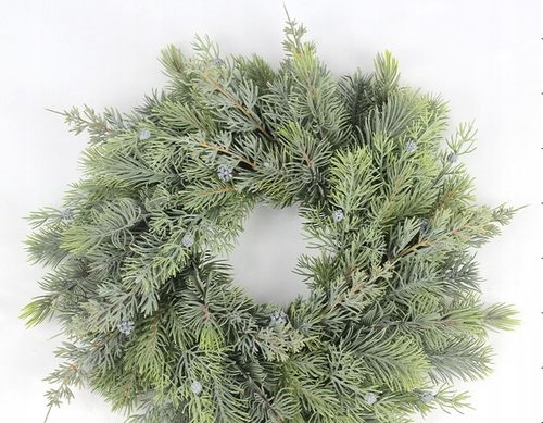 Ten świąteczny wianek dekoracyjny o średnicy 40 cm zachwyca realistycznie wyglądającymi zielonymi gałązkami, które tworzą naturalną i elegancką formę. Idealnie sprawdza się jako ozdoba drzwi, ściany lub centralny element stołu, dodając wnętrzu ciepła i autentycznego świątecznego uroku, który przetrwa wiele sezonów bez utraty świeżości.