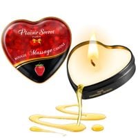 Naturalna świeca o zapachu truskawek, przeznaczona do podniecającego masażu ciała. Płyn powstały z roztopionej świecy ma odżywczy wpływ na skórę, nadając jej delikatną gładkość. Świeca marki Plaisir Secret jest przeznaczona do masażu całego ciała. Po zapaleniu topi się, zmieniając się w ciepły, wonny olejek, który pozwala skórze lepiej chłonąć składniki odżywcze. Doskonale sprawdza się do relaksującego masażu. Odpowiednio dobrany skład olejków sprawia, że skóra jest bardziej miękka, odżywiona i nawilżona. Produkt posiada przyjemny i pobudzający zapach truskawek. Olejek jest delikatny i jedwabiście gładki, dzięki czemu może być stosowany na całym ciele.