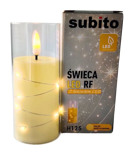 Elegancka świeca LED w odcieniu kości słoniowej o idealnym połączeniu klasycznego wyglądu i nowoczesnej technologii. Świeca marki SUBITO zawiera subtelny łańcuszek mikrodiod LED, który emituje ciepłe, białe światło, tworząc przytulny klimat w domu, w ogrodzie czy na tarasie.
