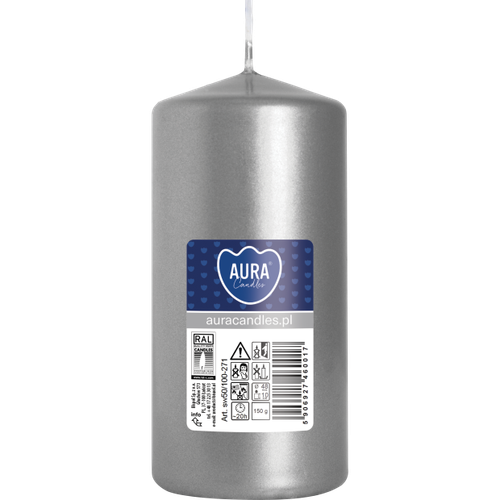 Świeca pieńkowa marki AURA, w eleganckim kolorze srebrnego metaliku, doskonale sprawdzi się w tworzeniu stylowej i nastrojowej atmosfery w każdym wnętrzu. Walec o metalicznym, srebrnym wykończeniu stanowi efektowną i nowoczesną dekorację stołu, idealną na przyjęcia, bankiety, wesela oraz uroczyste kolacje. Srebrna, metaliczna świeca wprowadza do wnętrza subtelny blask, harmonię i przytulne ciepło, podkreślając wyjątkowy charakter salonu, sypialni czy łazienki. To ponadczasowy wybór na święta, rocznice, eleganckie spotkania oraz inne szczególne okazje.