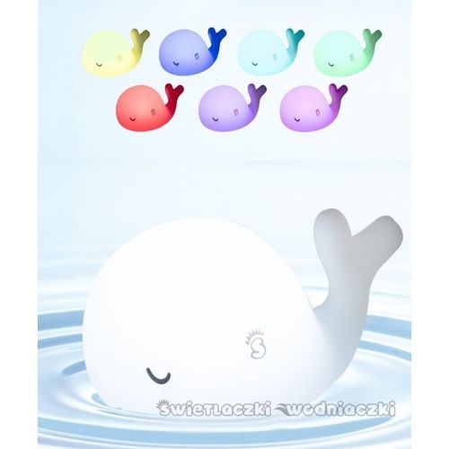 Lampka Wielorybcio to nie tylko zabawa w wodzie, ale także lampka pomocna w usypianiu.