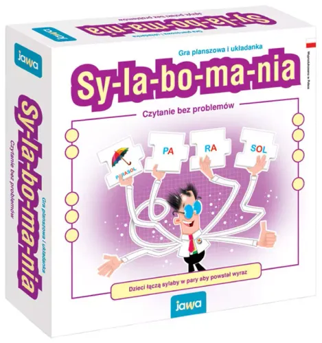 Połącz sylaby w pary, tak aby powstał wyraz Gra: Gra jest układanką i grą planszową dla dzieci w wieku od 5 do 9 lat. Gracze kolejno rzucają kostką i zmierzają w kierunku Mety, a po drodze wykonują polecenia przypisane do „Pól Zdarzeń”. Układanka: Do obrazka należy dopasować odpowiednie sylaby, aby powstał wyraz. Podczas zabawy dzieci kształcą umiejętności ważne w nauce czytania i pisania. Rozwijają analizę i syntezę wzrokową. Gra jest pomocna w nauczaniu początkowym. To również pomoc dydaktyczna dla dzieci z dysleksji i dysgrafii. Zawartość opakowania: • plansza do gry, • zegar, • 50 sylab, • 30 rysunków, • 4 pionki, • kostka do gry, • instrukcja.